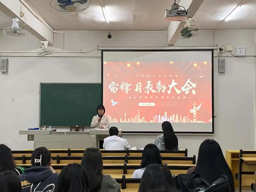 4月3日,会计学院学生第五党支部在第一教学楼D501召开了雷锋月表彰大会暨四月份活动动员大会。党支部书记张圣荧老师、宣传委员赵文莉老师以及吴飞老师出席了本次会议。会计学院学生第五党支部预备党员、发展对象及入党积极分子参加了会议。会议由党支部书记张圣荧老师主持召开。