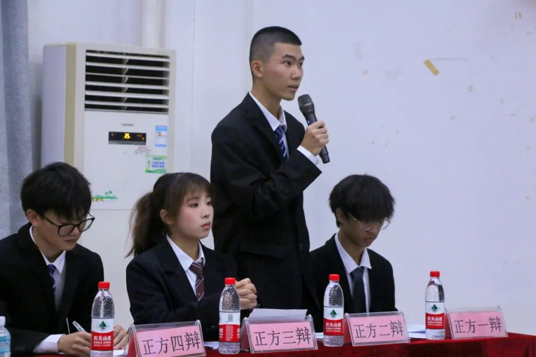 比赛开始,双方辩手各抒己见、言辞犀利,据理力争,现场气氛热烈,辩论双方以充分的事实作为论证的支撑,以犀利的语言驳斥对方的漏洞,以坚定的言辞维护己方的观点。