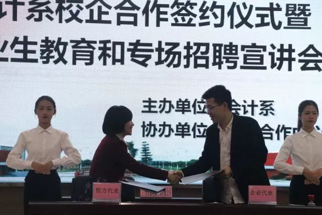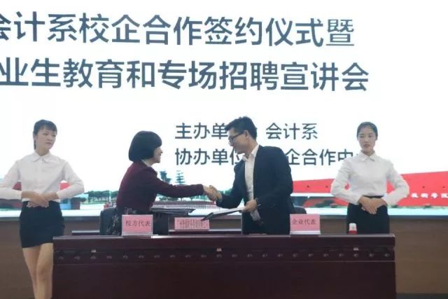 本次会计系校企合作签约仪式暨毕业生教育和专场招聘宣讲会已圆满结束,但我院与企业间的合作交流仍在深入地发展中,相信在不久的将来,我院能够迎来更大的飞跃!