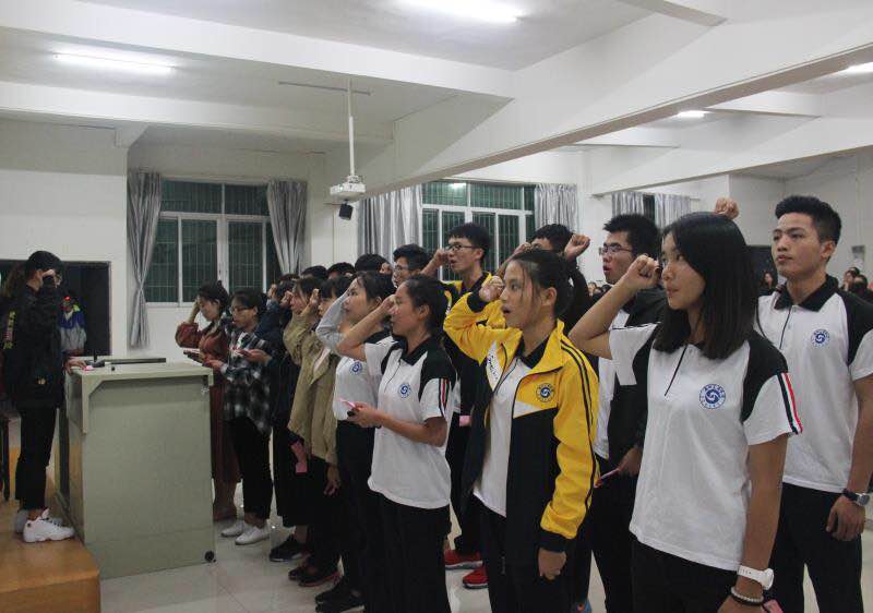 活动在全体奏唱国歌中拉开了序幕。首先,蔡宗坚老师针对学院的实际情况详细解读了“三风”建设,从学生课堂纪律、教师教学、考试纪律和安全文明行为及业余爱好的养成等方面与同学们进行了交流互动。在蔡老师详解关于积极践行“以德为行,以学为上”的教育思想和“五进”活动等具体内容下,相信各班委对如何更好地践行“学风纪律月”活动有了更深刻的理解。