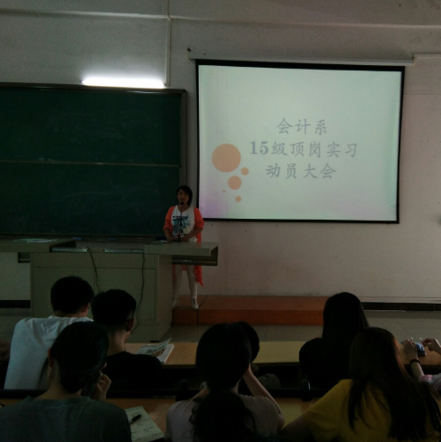 2017年5月31日下午,会计系15级顶岗实习动员大会在第二实验楼C305教室召开。会计系副主任全桂艳,蔡宗坚老师,15级会计专业专科辅导员及学生出席了本次大会。