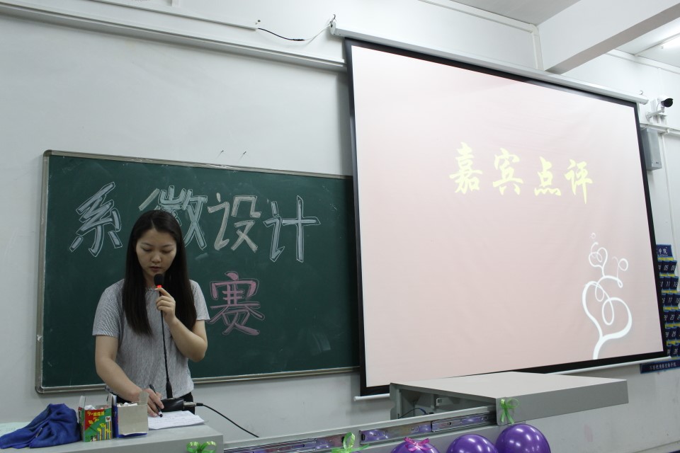 随后,王萌老师对此次作品进行点评,她从“共性和个性”的方面讲起,接着再从色彩及设计元素上对一些作品表达了自己的看法并对同学们的作品提出了赞扬之意。文娱部同学带来的情歌对唱《明明就》将现场气氛推向了高潮。
