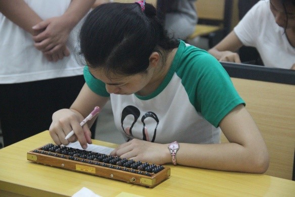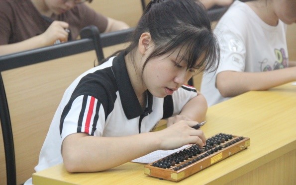 中午12点30分,随着一声哨音响起,“点钞”比赛正式打响。各位选手开始捻动手中的钞票,通过心、眼、手三者密切配合,清点出一捆捆钞票。各式各样的点钞方法和熟练的点钞技巧令大家大开眼界。随后进行的“珠算”比赛更加精彩,参赛者们默念口诀,沉着谨慎地拨动珠子,清脆的“哒哒”声响彻赛场。比赛最后一项“盲打计算器”赛况愈发紧张,参赛者们激烈角逐。一双双手在计算器上翻飞,准确无误地按下一个个数字,他们目光专注,丝毫不被窗外的大雨所影响,这充分展现了会计系学子的综合能力和勇争第一的精神风貌。