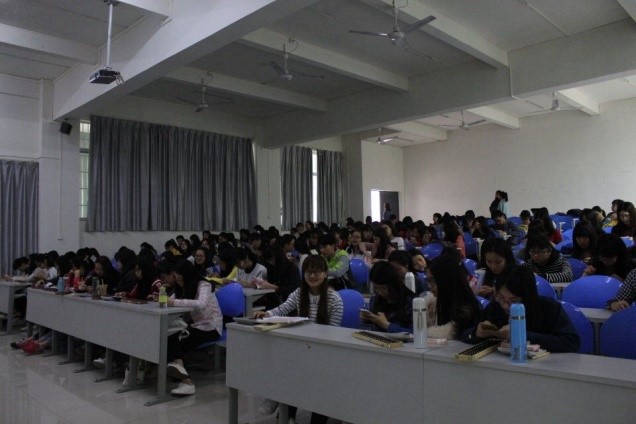 中午12点30分,培训正式开始。首先,高主任就“如何更好、更快地利用算盘算出精确的数据”展开一系列的讲解。台下的同学们跟着高主任的思路并积极地配合着,课室内响起同学们认真朗诵记忆口诀和拨动算盘时清脆的声音。通过该环节的培训,参赛选手更加熟悉算盘的相关知识,熟练掌握珠算加法、减法等基本技能。紧接着是针对“点钞”的培训,高主任主要从“清点”、“计数”和“扎把”这三方面进行演示,她要求同学们心、眼、手三者都要密切配合,这样在比赛时能做到既快又准。对于在培训过程中存在疑惑的同学,高主任都会进行一一指导。同时她还提醒到,培训课上学到的相关方法需要通过课后的认真练习来巩固和熟练。最后,杨新伟老师上台说明了比赛时间以及讲解了比赛的相关规则。在高主任的悉心指导和杨新伟老师的细心叮嘱下,本次大赛的培训工作圆满结束。