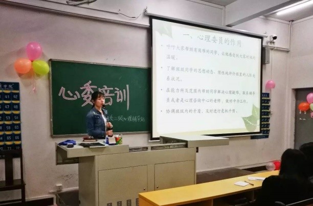 培训伊始,主持人通过视频播放的方式让大家了解到饮食规律对大学生身体健康的重要性,明白只有良好的饮食习惯才能成就身体的健康。接着,主持人让大家发表对近年来“马加爵事件”以及“某准女大学生被骗学费导致猝死事件”的看法,并以此提醒到要提高警惕,谨防上当。培训中,趣味问答的小活动让大家在欢乐的气氛中了解到了更多的心理知识,明白当面临困难时如何更好地去沟通,学会释放压力。最后,由钟晓燕老师对此次培训进行总结,她首先介绍了心委的基本职责并肯定了心委在班级里面起到的作用。随后她对全体心委提出几点希望:1、要具有良好的思想道德素质;2、要有健康的心理以及良好的沟通能力;3、要有敏锐的观察能力和组织协调能力。言简意赅的总结,让心委们充分了解到自己所担任的重责,使她们能够更好地服务于同学们,让心理问题得到及时解决。