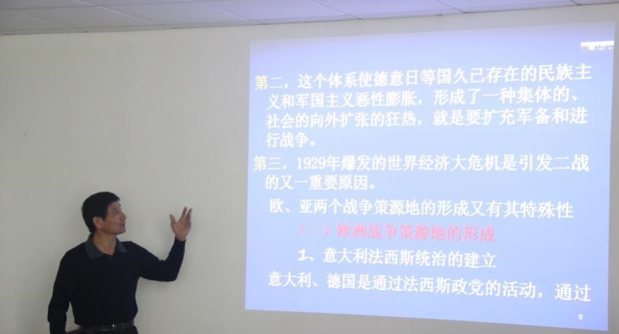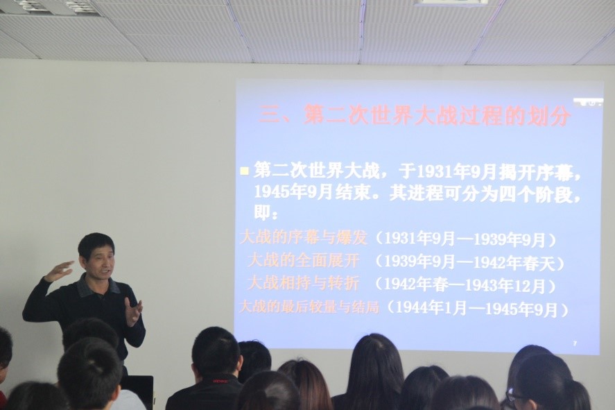 为了开阔师生视野,更好地了解第二次世界大战史实,2017年3月21日下午2点30分,由会计系举办的“二战史”系列学术讲座第一讲在系部楼311会议室开讲。本次讲座由广东外语外贸大学郑德平教授主讲。参加此次讲座的有会计系主任程燕教授,副主任高玉莲,全体辅导员以及各班级的班委们。