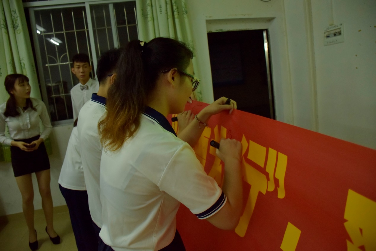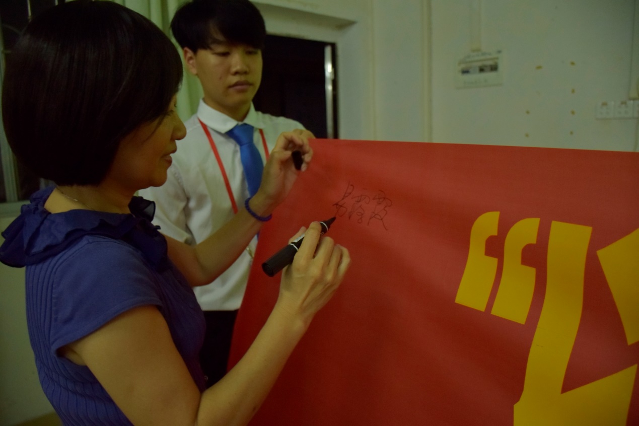颁奖结束后,大会进入了第二个环节,学生代表上台作诚信应考宣誓,全场的领导老师和学生进行诚信应考签名活动。