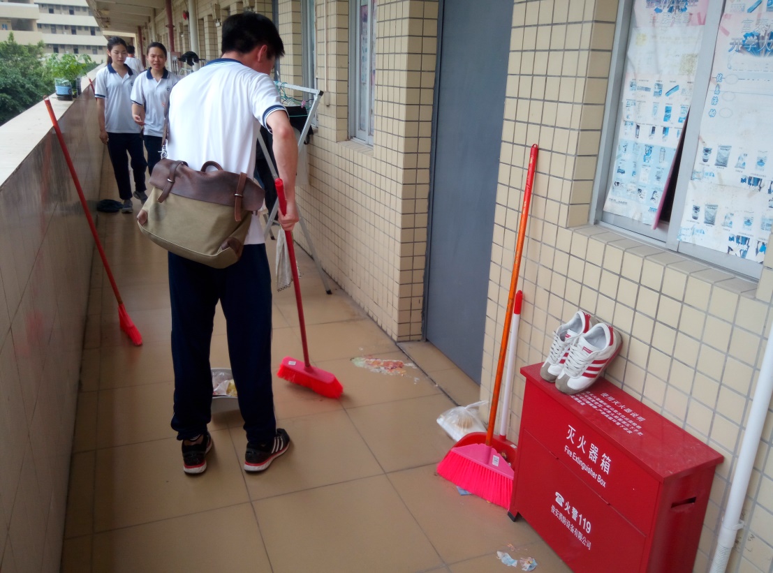 第九批发展对象们,迅速投入到了清洁工作,帮助宿管老师打扫宿舍楼卫生的劳动中。