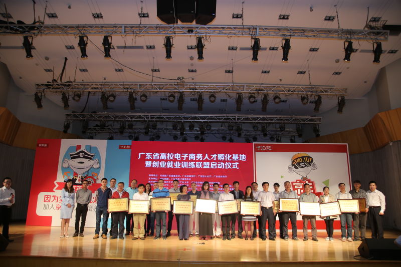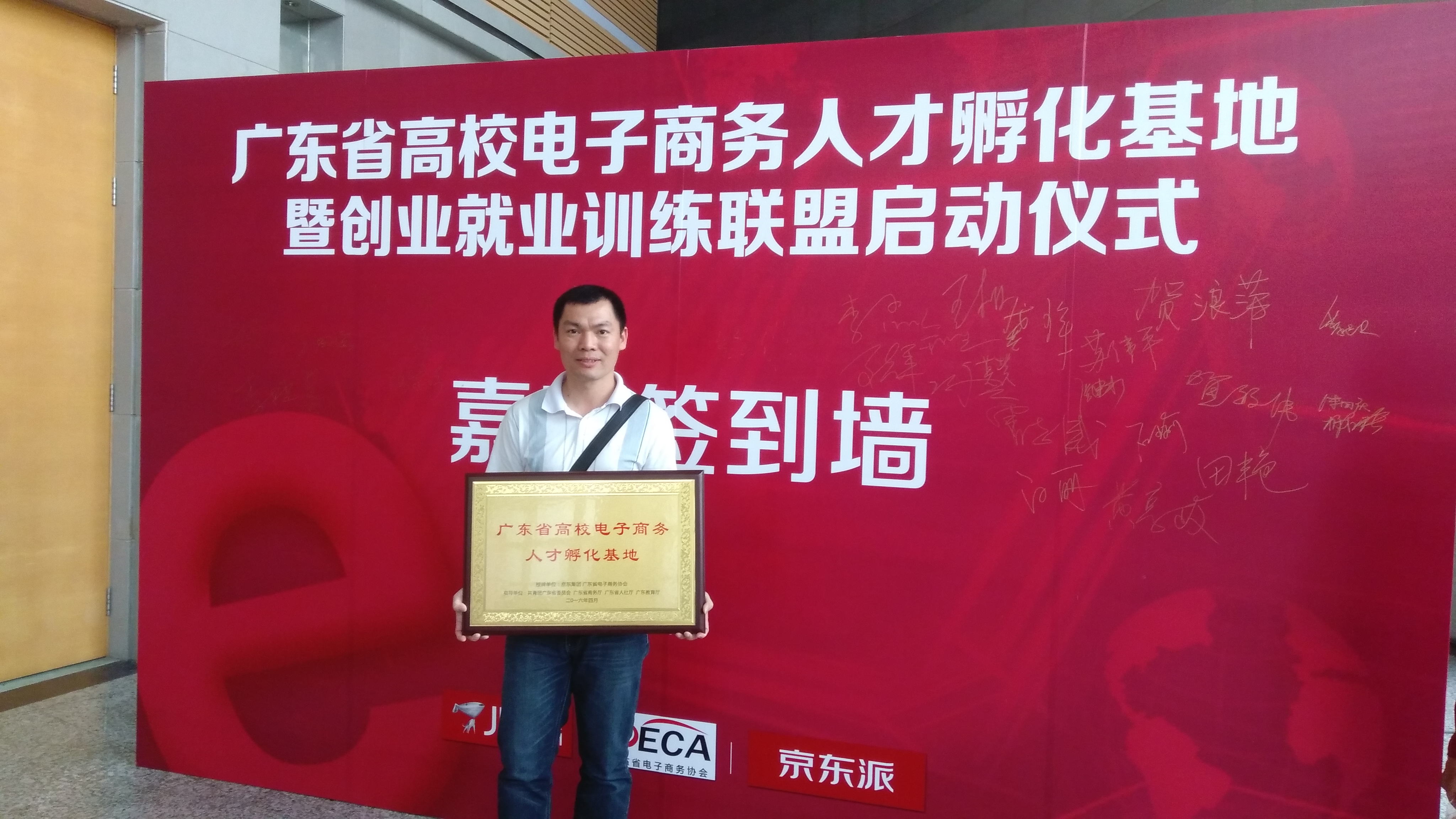 我院作为“广东省创业就业训练联盟”筹建单位之一出席了本次仪式,并接受了由京东集团和广东省电子商务协会授予的“广东省高校电子商务人才孵化基地”的牌匾。