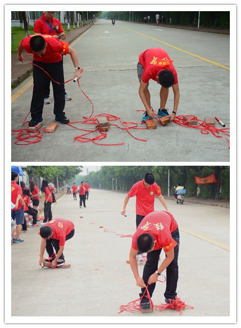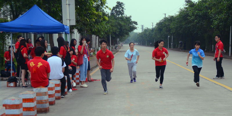 比赛内容为:同一个部门的4名干事组成一个队伍,接力跑步并克服路上的各种障碍,最后到达设定的终点。比赛分为4段接力赛,第一段是从厚德广场出发,跑到学生公寓16栋,第一段的选手需要在接近下一个选手时光脚踩破地上的气球;第二段的选手需从前一个选手里接过接力棒并且从学生公寓16栋跑向第三饭堂,第二段的选手需要在临近下一个选手时快速正确算出所给的加减乘除混合的数学题;第三段的选手需要从第三饭堂跑向篮球场,并且在临近第四段的选手时光脚踩地上的一段鹅卵石路;第四段的选手则从篮球场跑回终点厚德广场,并且在距离终点50米的时候要双脚各绑一个砖头直至走到终点线。