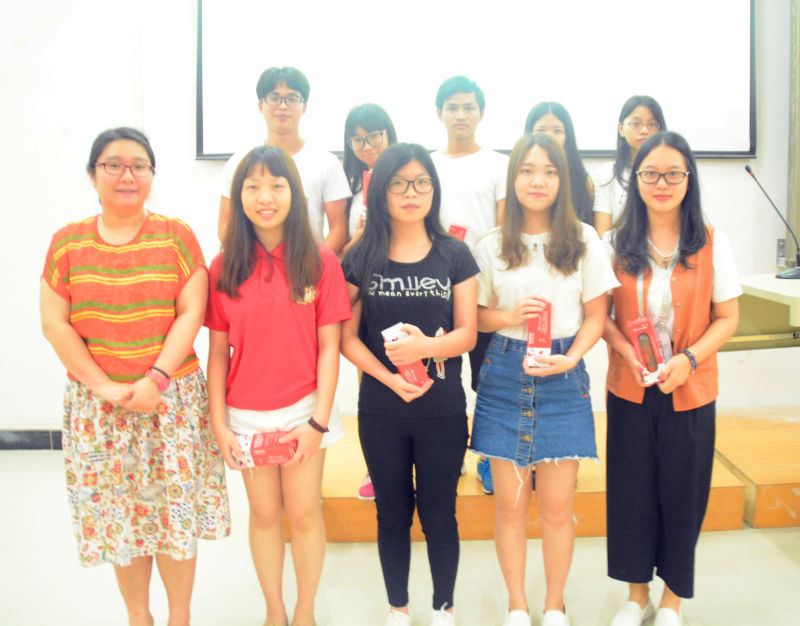 现场获奖幸运同学与方韵诗老师合影