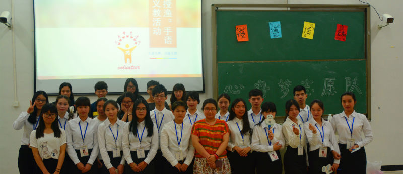 2016年5月19日,由经贸系心冉梦志愿队组织的“授渔”手语义教活动在第一教学大楼C207有序展开,出席本次活动的嘉宾有经贸系辅导员方韵诗老师,还有来自院青年志愿者行动指导中心、会计系缘梦公益团队、工商管理系爱启航服务队、计算机志愿服务队、公开学院青年志愿者的代表、和我系的各部门代表们。