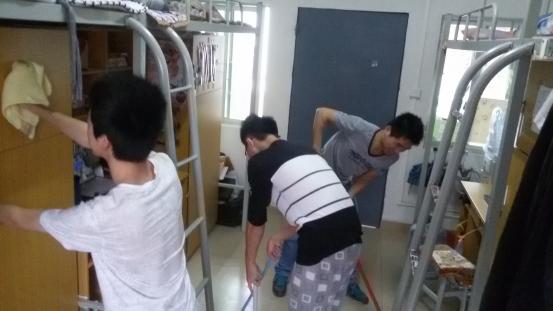 各班学生也积极配合,收到活动通知后立即开始了清扫工作,不放过宿舍的任何一个角落。不一会儿,宿舍的走廊、门前、窗前便多了一个又一个忙碌的身影。生活委员时刻关注清洁工作的进程,同学们的劳动热情也很高,不怕脏不怕累。在这次活动,我们看到的是团结和互助,付出与奉献。