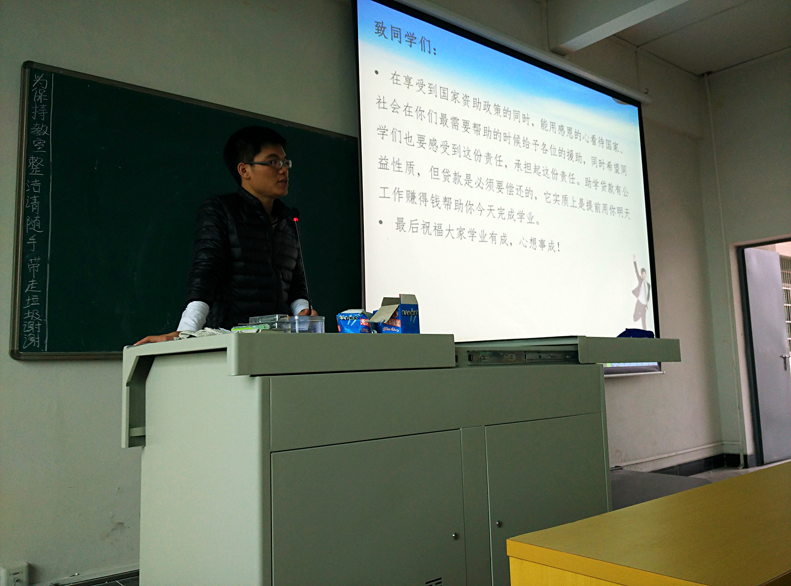 2015年12月3号下午,ky开元集团官网经济与贸易系在一教D302教室开展了一场“君子怀德,诚信还贷”为主题的讲座。出席嘉宾有郑艺欣,张镇升老师等。讲座主要讲述学生贷款,诚信还贷的教育问题。此次讲座对象是我系15级家庭经济困难学生。