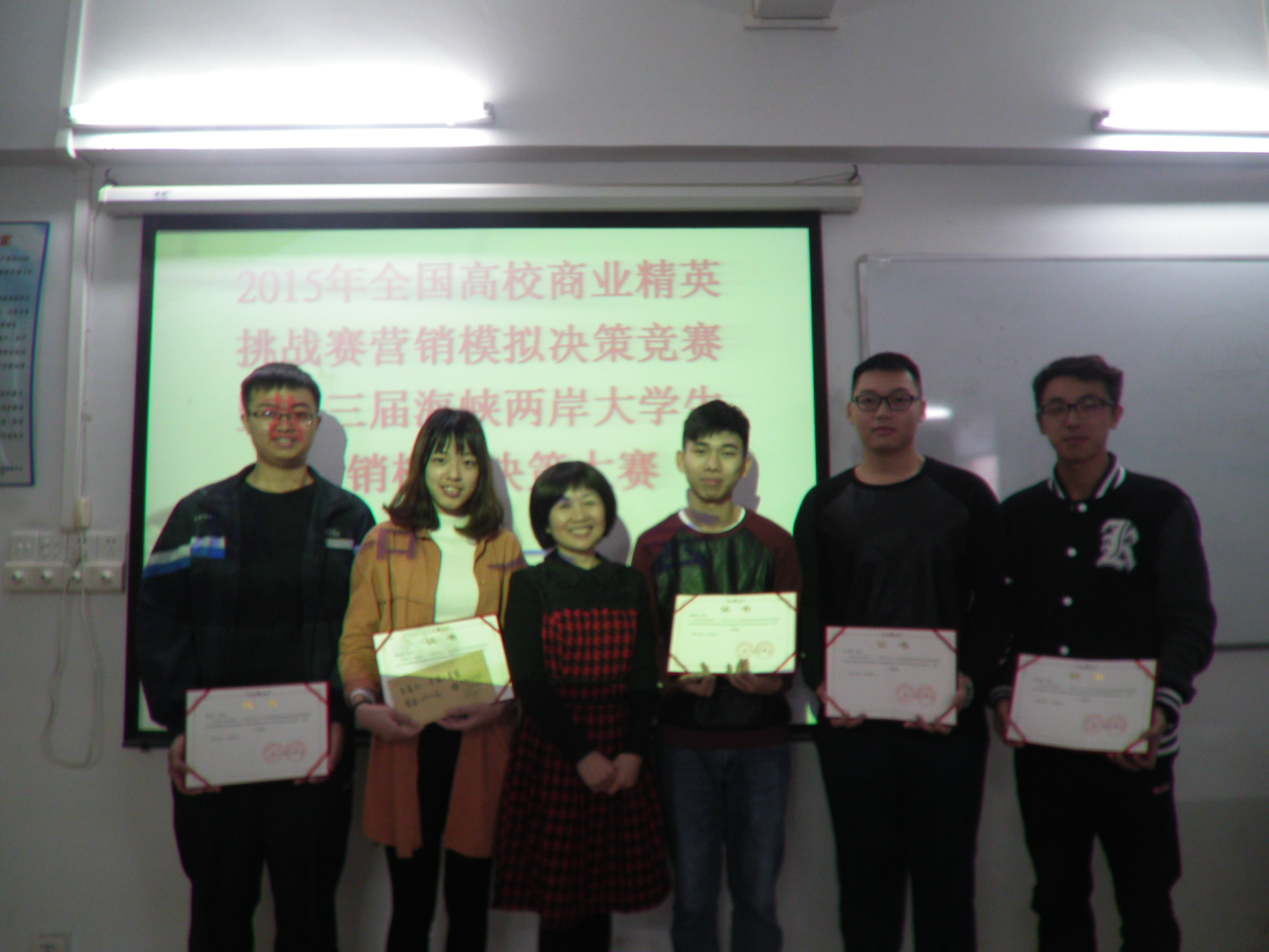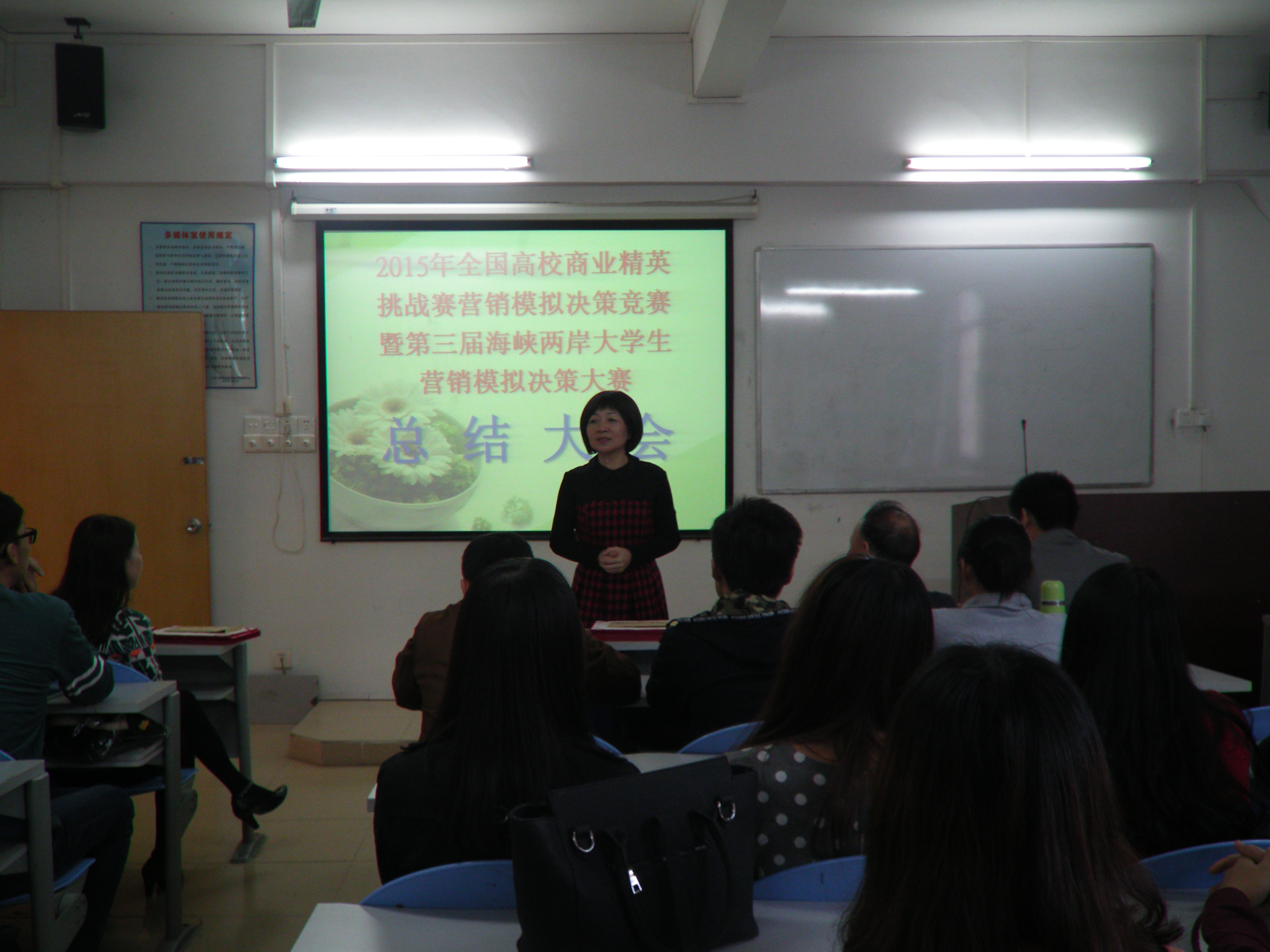 2015年11月30日下午,经贸系在经管楼313召开2015年全国高校商业精英挑战赛营销模拟决策竞赛暨第三届海峡两岸大学生营销模拟决策大赛总结大会,大会由市场营销教研室主任张晓英老师主持,出席嘉宾有:经贸系主任易露霞教授、副主任李习纯副教授、副主任马超平、办公室主任黄享政、程小阳老师。