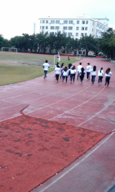 刚下过雨的田径场地面积水,但这并没有阻挡积极分子们锻炼的热情,只是原计划中的4*100米接力跑比赛临时变更为1000米慢跑,组员们在锻炼中同样也收获了快乐。