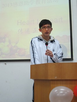 为强化受奖助学生的德学修身意识,促进学生资助工作的持续健康良性发展,积极践行“以德为行,以学为上”的教育思想和“五进”活动,结合学院实际,计算机科学与工程系在花都校区实验楼101室开展了一场2013年“Heart to heart 传递正能量 诚信感恩行”的主题教育活动。参加这次活动的有学生工作组组长吴华光老师和辅导员李静媚老师;各班班长、团支书以及2013-2014学年12级受奖助的全体学生。
