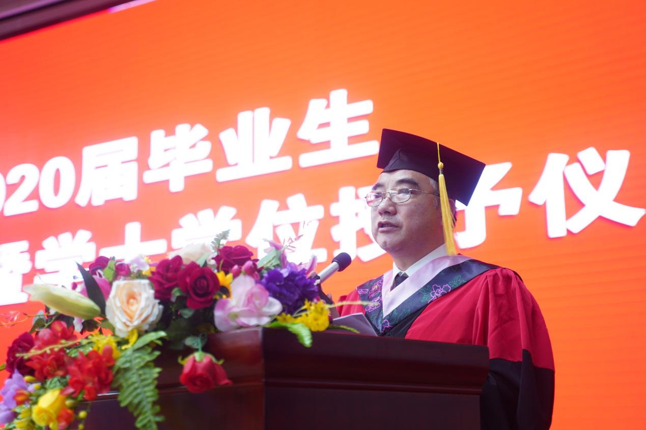 在学生代表廖建宇同学发言完毕后,乔丽媛副院长宣读《关于准予2020届学生毕业的决定》《关于授予2020届本科毕业生学士学位证书的决定》《关于表彰2020届优秀毕业生的决定》三项重要决定。