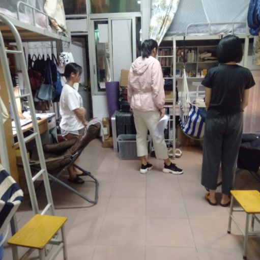 检查后,发现宿舍整体情况较好,但有个别宿舍存在一定问题,主要表现在:地面不洁、桌面杂乱、书架混乱、床上杂乱,使用违禁物品等,老师们在检查过程中逐一进行了具体指导并提出解决措施,指出寝室长、班长各负其责,层层落实,逐步进行卫生整改。要求学生自觉保持室内清洁,营造舒适的生活环境。