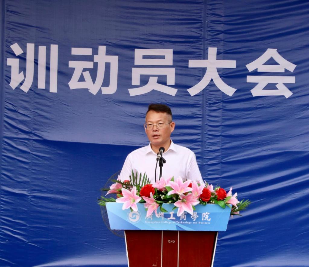 学校副校长、军训领导小组副组长朱特威代表学校对大力支持学校军训工作的单位及教官表示衷心的感谢,并对2023级新生的到来表示热烈的欢迎。他指出,军训在增强当代大学生国防观念和国家安全意识的同时,教育引导广大青年将个人理想、个人成长融入强国建设、民族复兴,争做中国特色社会主义事业的合格建设者和可靠接班人。朱特威副校长向同学们提三点希望和要求:一要坚定理想信念,达成军训的目标。二要锻炼意志品质,练就过硬的本领。三要坚决听从指挥,传承优良的作风。讲话最后,他鼓励青年们长志气、强骨气、厚底气,并预祝本次军训工作圆满成功。