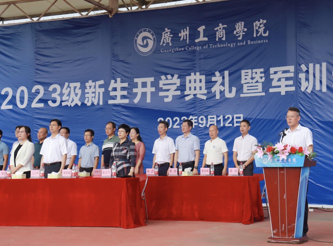 上午8点整,庄严的歌声奏起。伴随着嘹亮的国歌声,开学典礼拉开帷幕。昂扬向上的姿态展示了广工商学子的青春风采。