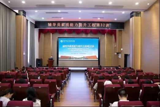 6月27日下午,以“新时代高校辅导员素质能力提升攻略:辅导员素质能力大赛心得分享”为主题的辅导员素质能力提升工程第32讲在花都校区图书馆415室举行。此次讲座由广东高校第十届高校辅导员素质能力大赛一等奖获得者、广东科技学院辅导员张静静主讲,学校学生工作部(处)副部长苏建贤担任主持人。全校辅导员及思想政治教育中心成员参与本次讲座。