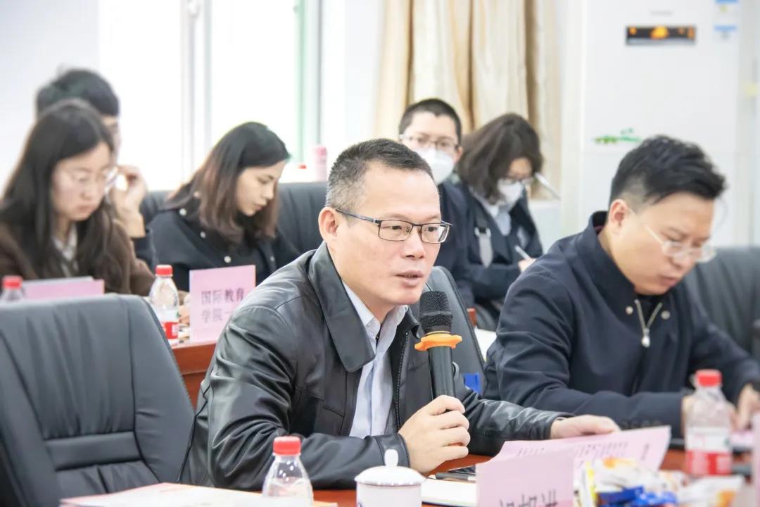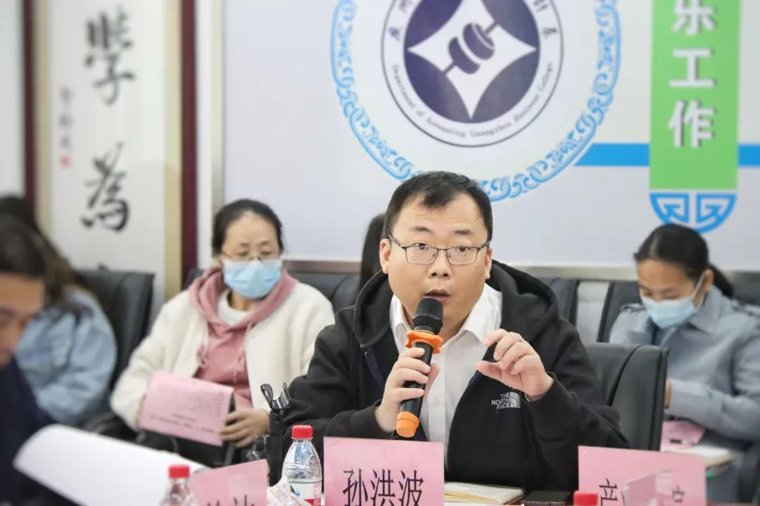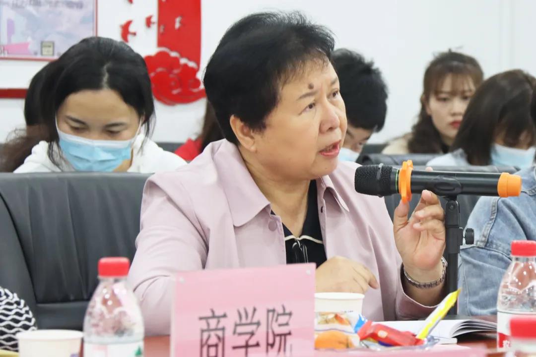 会计学院全桂艳副院长概括了会计学院落实“德学五进”的总体情况,明确“五有三专”是会计学院落实“德学五进”的具体要求。接下来会计学院学工办周阳阳副主任从措施、方法、成效三方面汇报了会计学院“进课室”的具体工作情况。随后,外语学院谢秀珍副院长就外语学院在构建良好学风工作方面进行经验分享和成果展示。