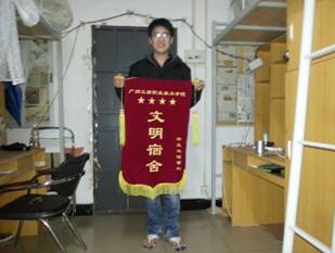 通过宿舍管理委员会严格系统的评选,最终以下宿舍荣获2012年12月份“文明宿舍”美誉:南2-216,南3-305,南4-207,南5-404,北1-140,北7 A -107,比赛结束后学院还对相关宿舍颁发了锦旗和奖品。