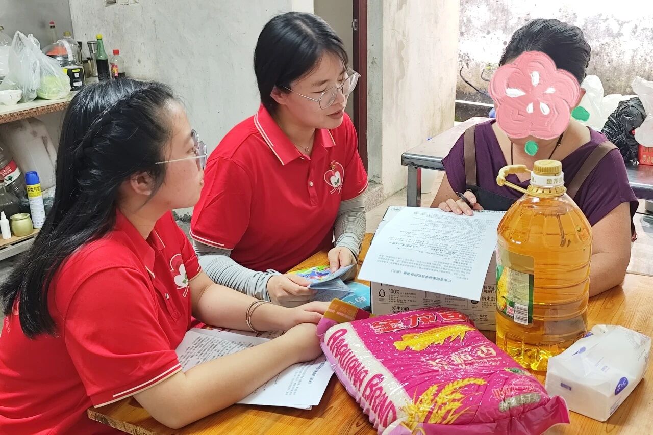 在山东围村村干部陪同下,筑梦志愿服务队队员们带着暖心关怀和慰问物资走进经济困难家庭,开展慰问活动。队员们深入了解受访村民的家庭情况,结合资助工作经验和真实案例,针对材料准备、申请流程等疑问进行详细解答,手把手指导村民掌握政策要点和办理步骤,让家长们对如何支持孩子求学做到心中有数。细致解读后,村民们难掩喜悦,因经济条件影响子女学业的顾虑悄然消散。