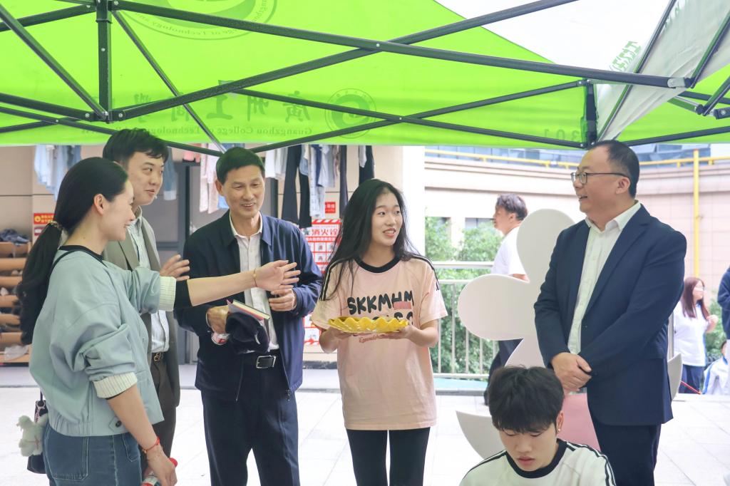 会议结束后,与会领导、师生共同移步至“音韵草木·染织秋声”音乐节互动活动现场,本次活动在“向阳”一站式学生社区举行,社区内特别设置了 “音韵草木·染织秋声”音乐节互动体验区与学生资助知识竞答区,现场气氛活跃,同学们参与踊跃。