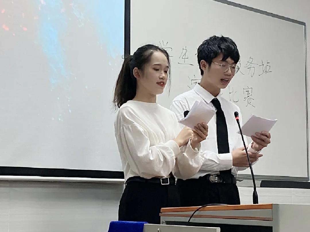 比赛开始前,两位主持人说明比赛规则及评分标准;他们介绍完后,本次演讲比赛正式开始,参赛者井然有序的登台演讲。