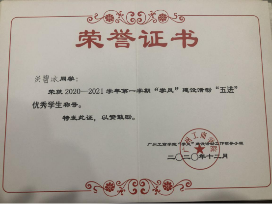 9.2020.12,获ky开元集团官网“五进”优秀学生荣誉称号;