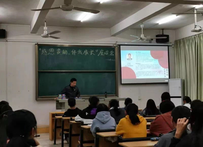 【本网讯】2019年12月11日晚,工商管理系在第二教学楼D403课室举办了“安恩资助,伴我成长”座谈会,工商管理系近百名的受资助学子,参加了此次的座谈会,本次座谈会由16级级长许莹老师主持,同时也请到了嘉宾杜贤威同学。