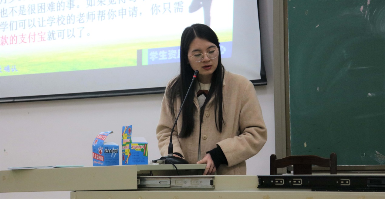 (本网讯)天寒瑟瑟,暖阳融融。为了让同学们理解感恩的美德,践行诚信的道义,2019年12月11日晚上7点整,计算机科学与工程系于第一教学楼C207举办“君子怀德,诚信还贷”专题讲座。本次讲座由我系辅导员周晓薇老师主持,18级和19级贫困生以及申请生源地贷款或高校贷款的学生参加。