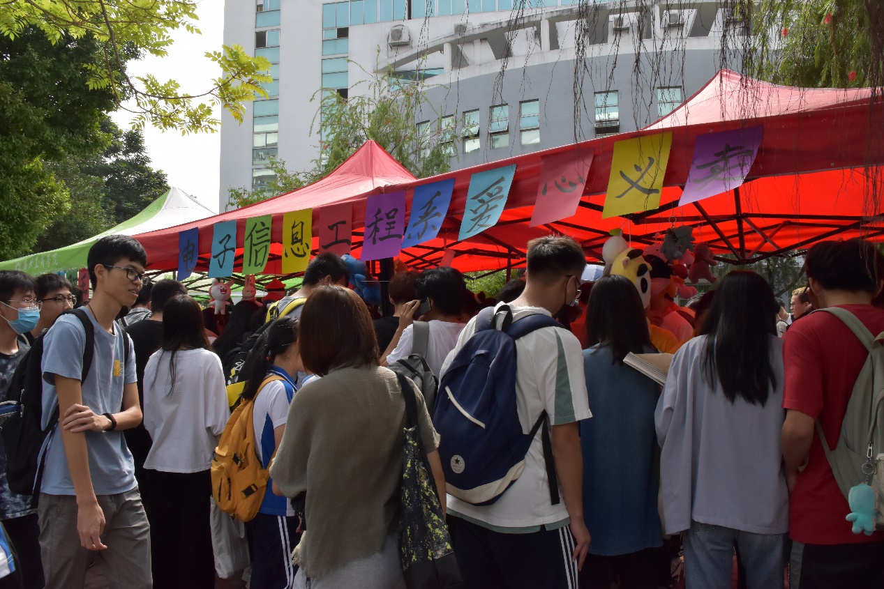本报讯:电子信息工程系在2020年12月9日上午10:00于学院人工湖旁开展以“凝聚每份爱、点亮每颗心”为主题的义卖公益活动。本次活动是出售老师和同学们捐赠出的闲置物品,并将获得的收益捐赠给公益事业,其目的在于带动同学的公益精神,传递爱心,传递温暖。