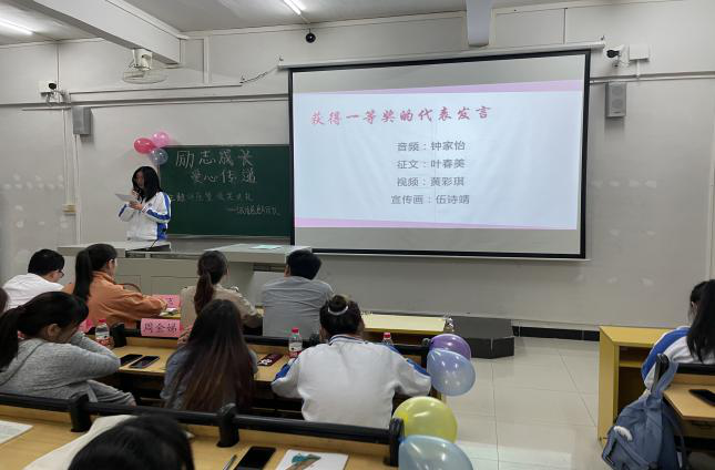 获得一等奖的同学向大家解释了自己作品的创作源泉——感恩国家对莘莘学子的帮助、感谢老师和学院的支持。正是因为有着这些帮扶政策和大家的善举,使自己感受到了社会的正能量,鼓舞着自己更加专注于学业,勇敢追梦,怀着感恩之心前行!