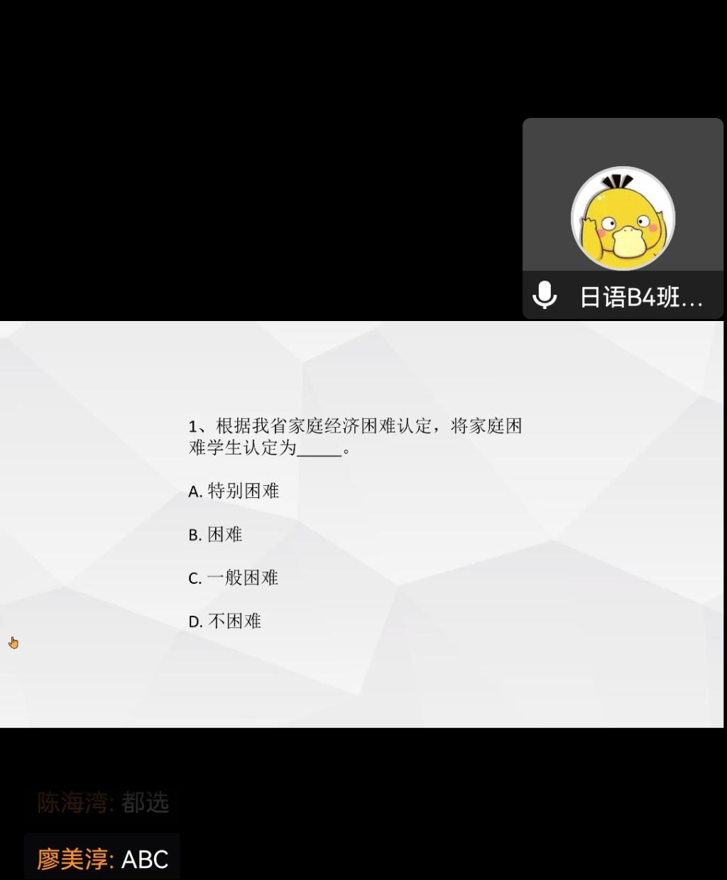 首先,第一个出场的是赵典老师,赵老师主要讲解了家庭经济困难学生认定工作。贫困认证的内容主要分为认定原则、认定依据和等级、认定程序、相关附件填写说明四个部分。赵老师结合实际情况与相关文件要求讲解了认定机构和职责、认定原则、家庭经济困难认定依据、认定程序等相关内容,向参加讲座的学生展示了相关文件,并强调贫困认定工作的阳光操作、始终秉持公平公正的原则。此外,赵老师呼吁通过贫困认定的同学应更加严于律己,遵守学校的各项规章制度,展现良好的大学生形象,赵老师最后以一个趣味答题环节结束了此次贫困认定的讲解,既巩固了受助学生对贫困认定的相关知识,又始受助学生对贫困认定工作有了更加全面的了解。