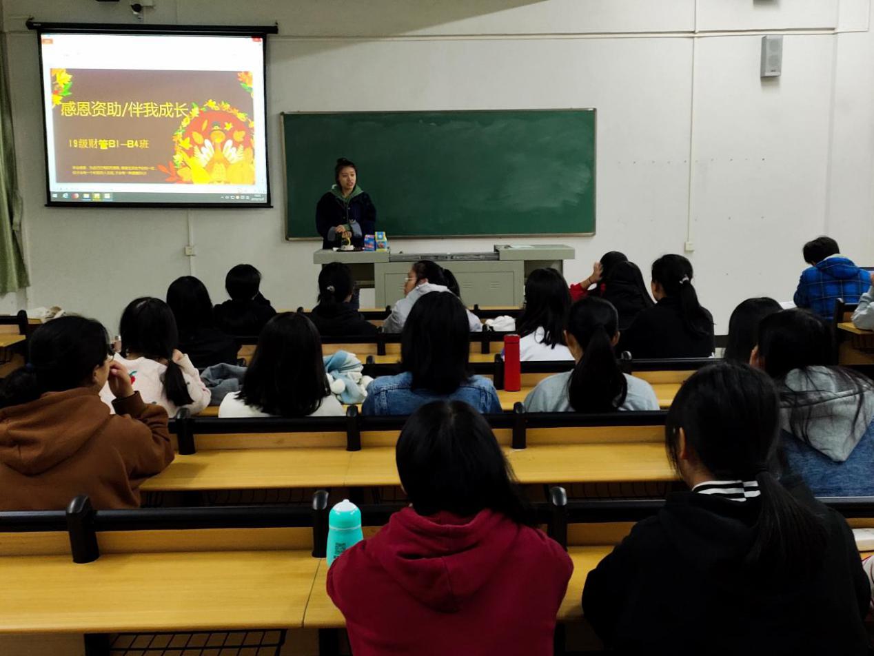 2019年12月9日,辅导员吴老师与19级财管B1-B4班获得国家助学金资助和助学贷款的29位同学在二教C403进行了一场“感恩资助 伴我成长”的座谈会。