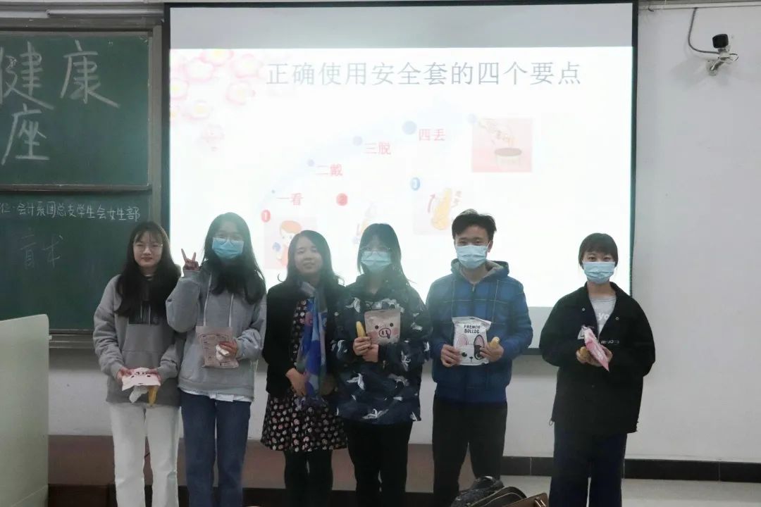 最后,李愈娜老师介绍了几种常用的避孕方法,为同学们示范了如何正确使用避孕套,并邀请五位同学上台现学现用,还给他们赠送了小礼品。