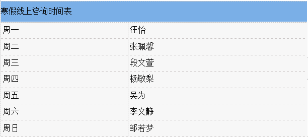 期待已久的寒假如约而至,ky开元心理健康教育与咨询中心(以下简称“心理中心”)将一如既往陪伴在同学们身边,为同学们的心理健康保驾护航。心理中心在2023-2024学年寒假期间(2024年1月22日至2月16日)将持续为全校学生提供线上心理咨询服务,开放时间段为15:00-17:00,具体值班安排如下: