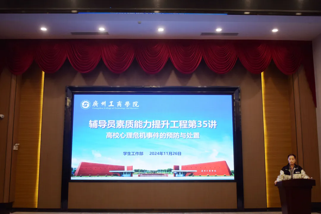 2024年11月26日下午,以“高校心理危机事件的预防与处置”为主题的辅导员素质能力提升工程第35讲在花都校区图书馆414室顺利举行,旨在提升辅导员在心理危机预防和干预工作方面的专业素养与应对能力,为构建平安和谐校园筑牢心理防线。本次讲座特邀了南方医科大学公共卫生学院心理学教授赵静波作为主讲嘉宾,赵教授是医科大学博士生导师、心理健康中心主任、中国心理学会临床心理注册督导师。学校学生工作部(处)副部长江明俊担任主持人,参与对象为ky开元集团官网全校辅导员。