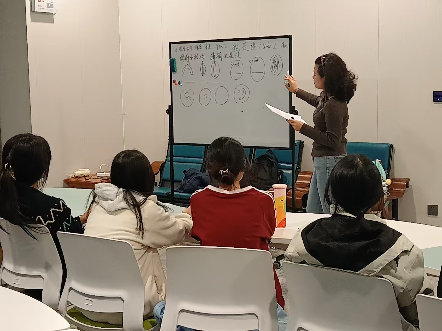 活动开场,主讲人以“我是谁?”提问切入主题,让大家迅速进入课堂状态。随后,主讲人分别画出男女生殖器官的简图,邀请同学们积极猜测。经过激烈的讨论后,主讲人揭晓答案,并顺势详细地讲述了相关的生理知识。通过这种直观又有趣的方式,原本有些羞涩、难以启齿的生理知识变得生动易懂,让同学们在轻松的氛围中收获宝贵的知识。