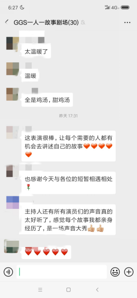 本次活动我们收到了许多观众的积极反馈,主持人春晖老师说:“今天的演出,确实有很浓重的情感,整个团体都很有正能量。”演出虽然结束,但留有很多东西待我们慢慢体会。