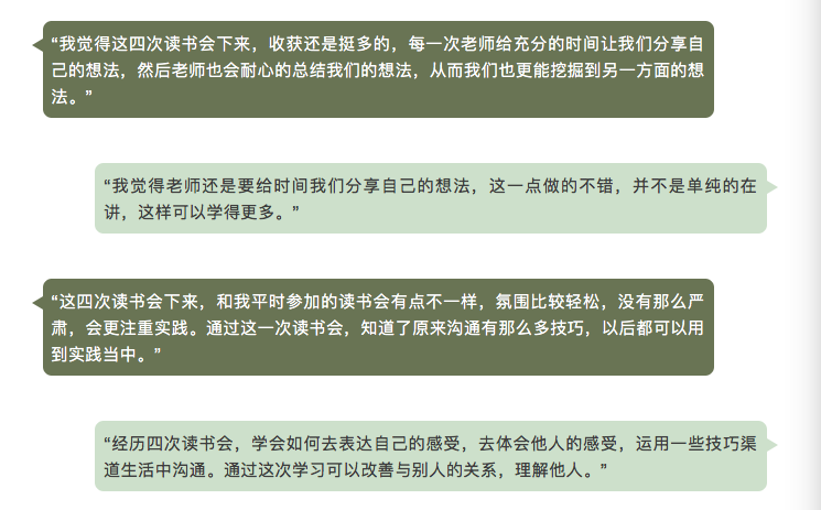 同学们在最后一期对读书会的想法: