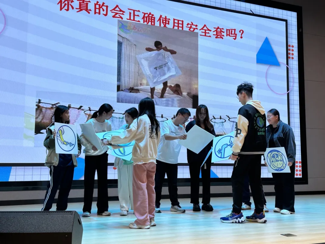 接下来,曾华老师特别强调了正确使用避孕套的重要性,通过互动环节讲解了避孕套的正确使用步骤。这种有趣的教学方式,使得学生们能够更加深刻地理解和掌握避孕套的正确使用方式,从而在实际生活中更好地保护自己。