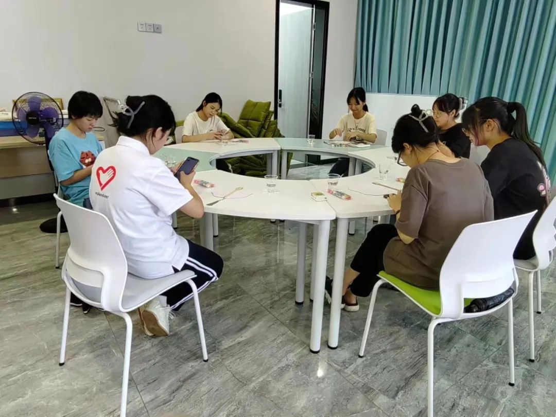 为促进学生的身心健康发展,帮助学生们在艺术中探寻自我,2023年6月9日,ky开元心理健康教育与咨询中心(以下简称“心理中心”)在图书馆六楼心理中心团体辅导室开展了“探寻自我,制扇至美”团扇DIY活动。