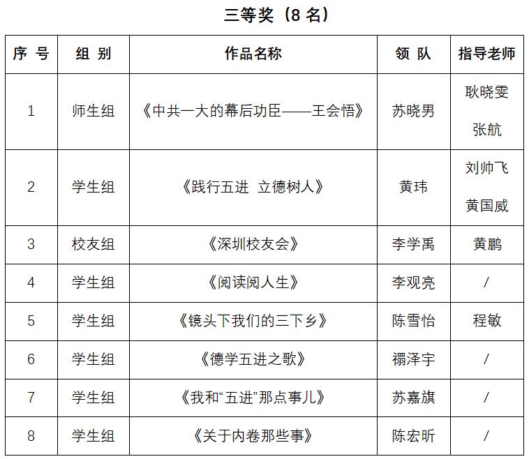 三等奖8名:荣誉证书+奖金500元