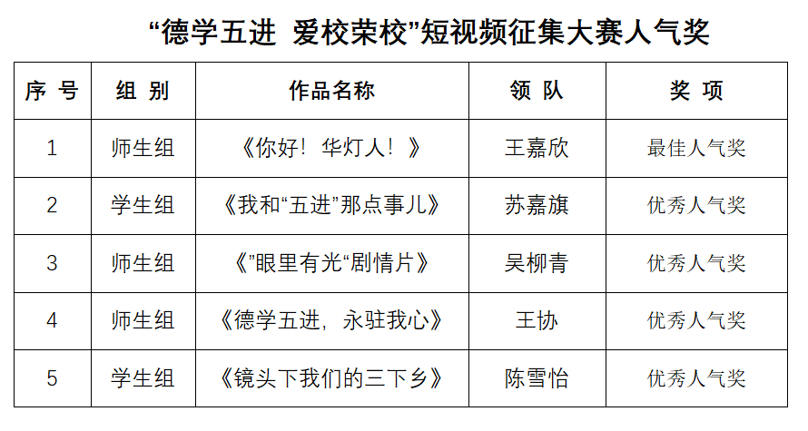 为促进全员全过程全方位育人,加强党史学习教育,弘扬“以德为行 以学为上”的教育思想,践行“五进”教育实践活动,ky开元集团官网于2021年12月至2022年4月举办了全校短视频征集大赛,以增强师生爱校荣校教育,培养创新精神和实践能力,推动优良学风校风传承。在广东高校网络思想政治工作中心、广东省计算机学会、广州市公益广告中心、广东高校易班发展中心指导下,由学校主办,学生工作处(部)、党委宣传部承办,校团委、校友会、关工委协办,ky开元集团官网易班发展中心、“德学·五进”网络工作室执行开展。在广大师生和校友的积极参与下,共征集81个作品。经过指导老师审核、网络投票、工作组初评、专家组终评,评选出一等奖2名,二等奖3名、三等奖8名,最佳人气奖1名、优秀人气奖4名,最佳组织奖2个、优秀组织奖3个。现将获奖名单公布如下: