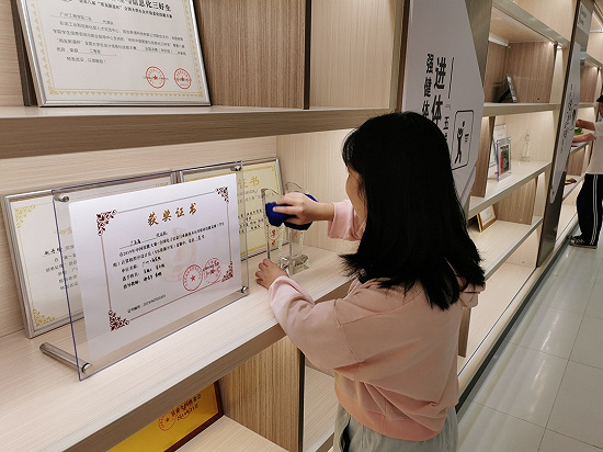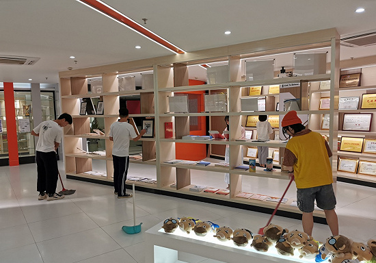 学生们积极参与德学成果展厅的劳动教育实践活动,维护展厅的优美参观环境,营造了充满活力和健康向上的校园氛围,进一步增强学生文明卫生意识,充分展示我院学生的光荣劳动精神风貌。