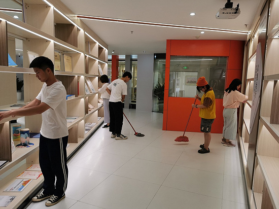 为积极践行我院“以德为行 以学为上”教育思想和“五进”教育实践活动,培养学生良好的劳动习惯,增强学生文明卫生意识,11月5日,我院易班中心学生工作站联合学生资助服务站在徳学成果展厅开展劳动教育实践活动。